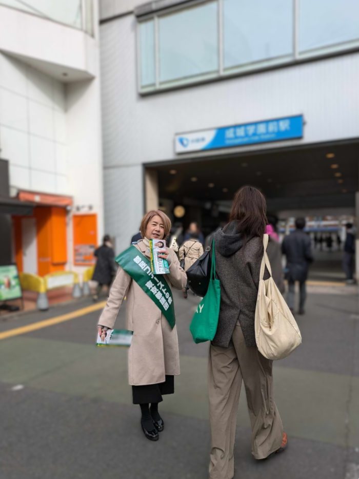 1/8の朝は、小田急線「成城学園前駅」で令和7年最初の朝のご挨拶を、支援者様お二人と一緒に、7:00-8:30で行いました。