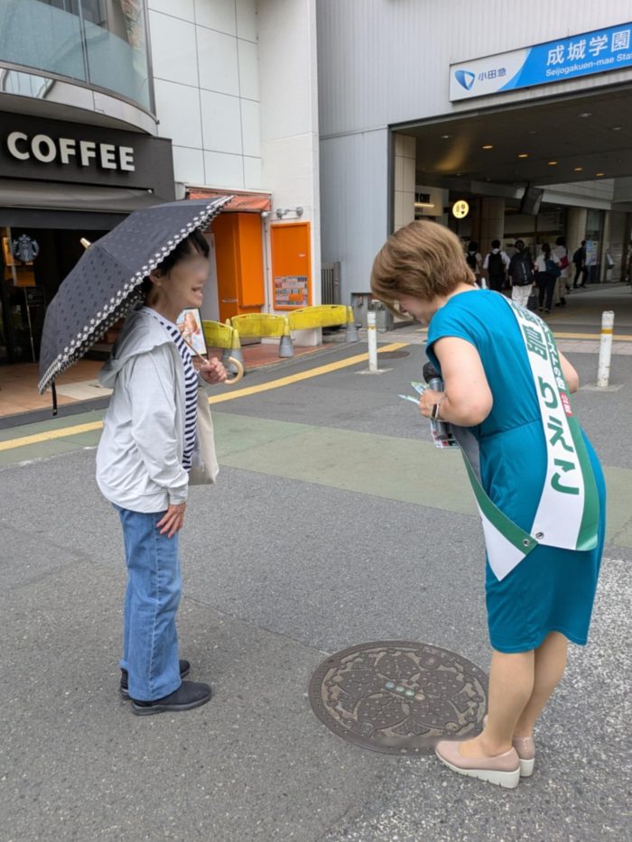 都議選8日目となる6/20は、主に小田急線沿線の駅で活動しました。この日は予定に合わせて演説を聞きに来てくれた皆様に力をいただきました!