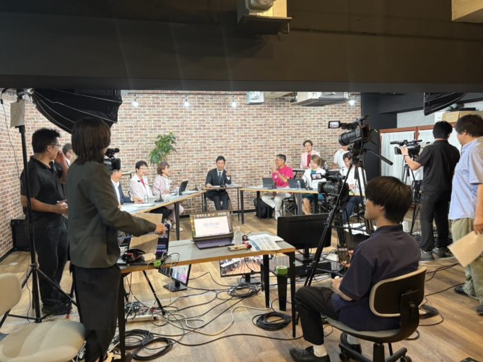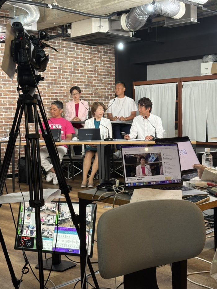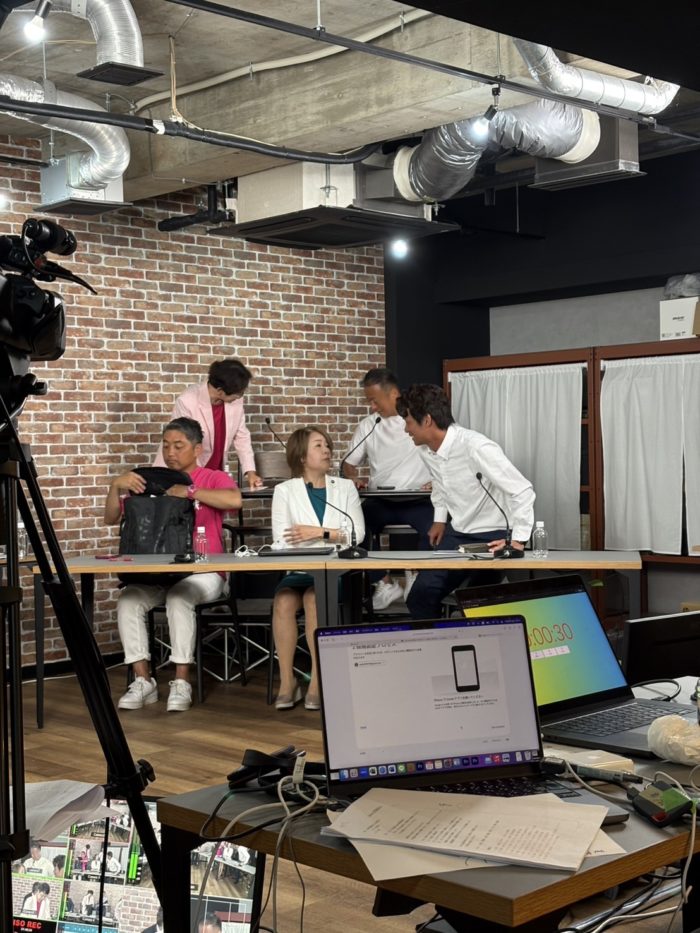 街頭演説をしたその足で向かいました。汗だく&疲れマックスでしたが、少しでも頭が動くようにゼリー飲料でブドウ糖を摂取して挑みました。