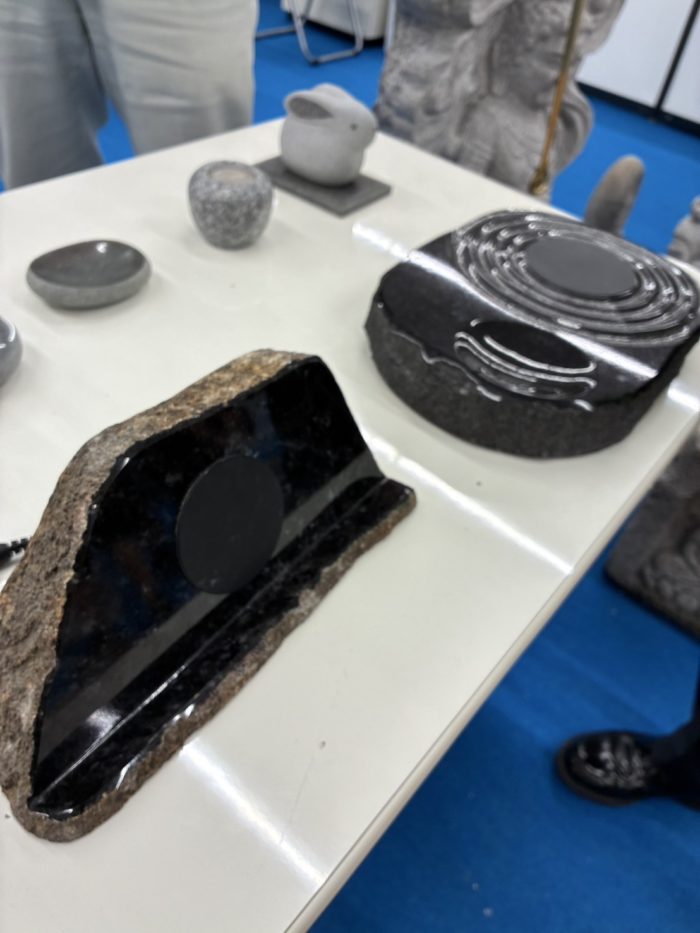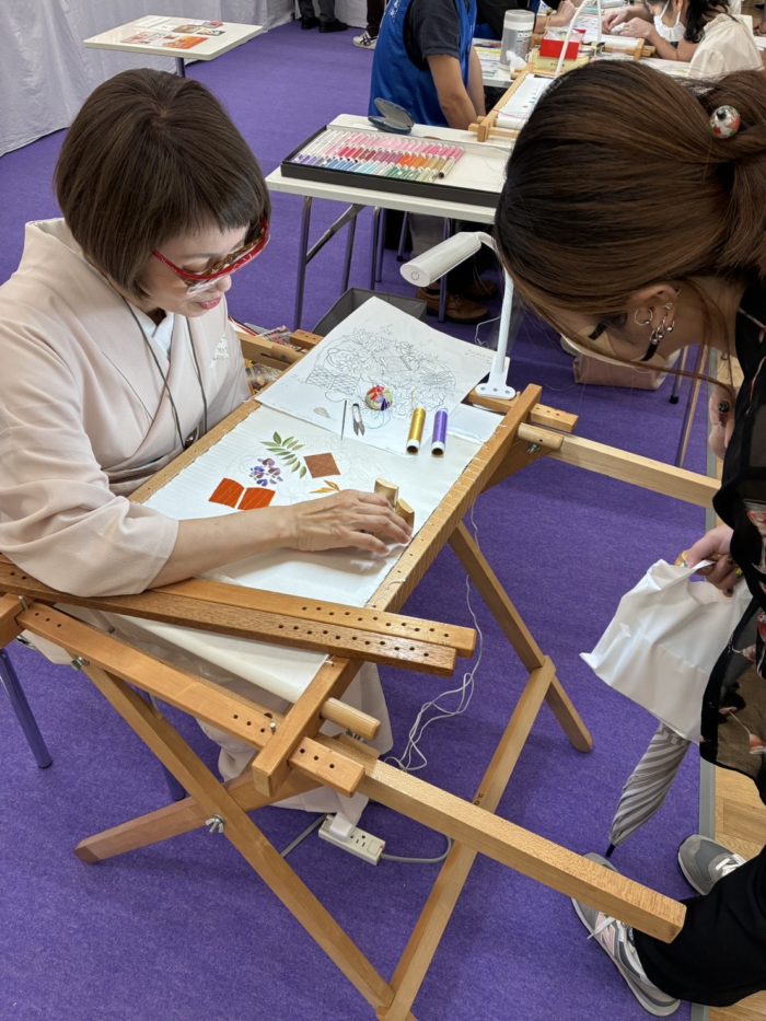 日本刺繍が表と裏で2本の糸を使って行うことや、石は割らないと中の色が分からない(写真はワイヤレス充電器で数十万円するそうです)ことなど、始めて知ることも多くありました。