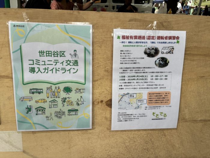 また、区内で様々な活動に取り組まれている皆様がブースを出していて、福祉輸送に取り組まれているせたがや移動ケアの理事、鬼塚さんとも再会。野毛エリアで住民参加のコミュニティバスの利用が進んでいることを紹介いただきました。