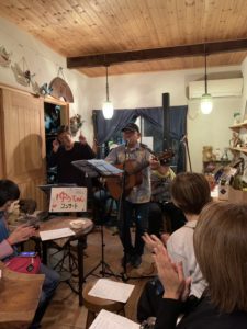 第9回都政報告会「新しい日常におけるコミュニティ活性化」で、素敵な演奏をしていただいた植田祐二さんがボーカルを務めるバンド「出夢出夢虫(でんでんむし)」の演奏が14:30-からあり、前夜祭(と名うった、前日の演奏会)に続き、演奏を聴きに行きました。学生時代から、障害者支援をはじめ、社会のために歌を届けてきた仲間が、声を合わせて歌う様子に心を打たれました。