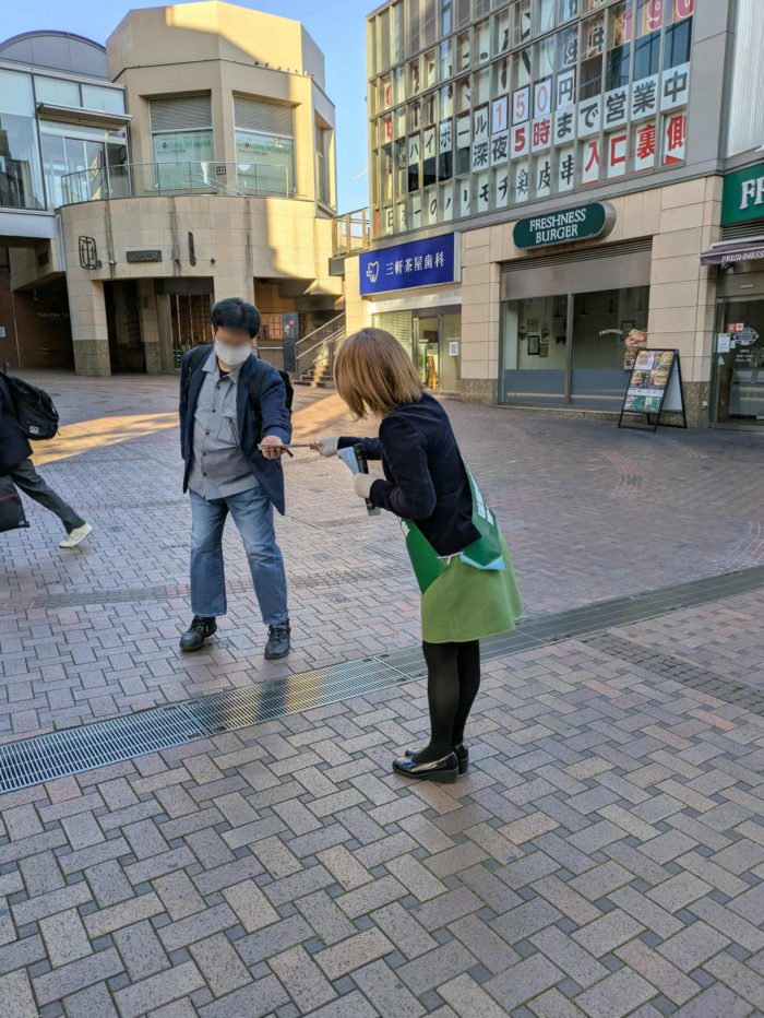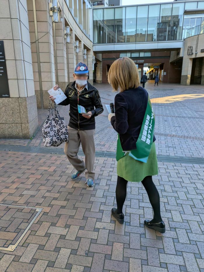 通勤される皆様と街頭演説できる場所までは距離があるのですが、レポートを受け取りたいという人はわざわざ来て受け取ってくれました。