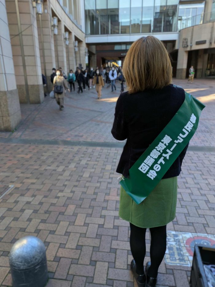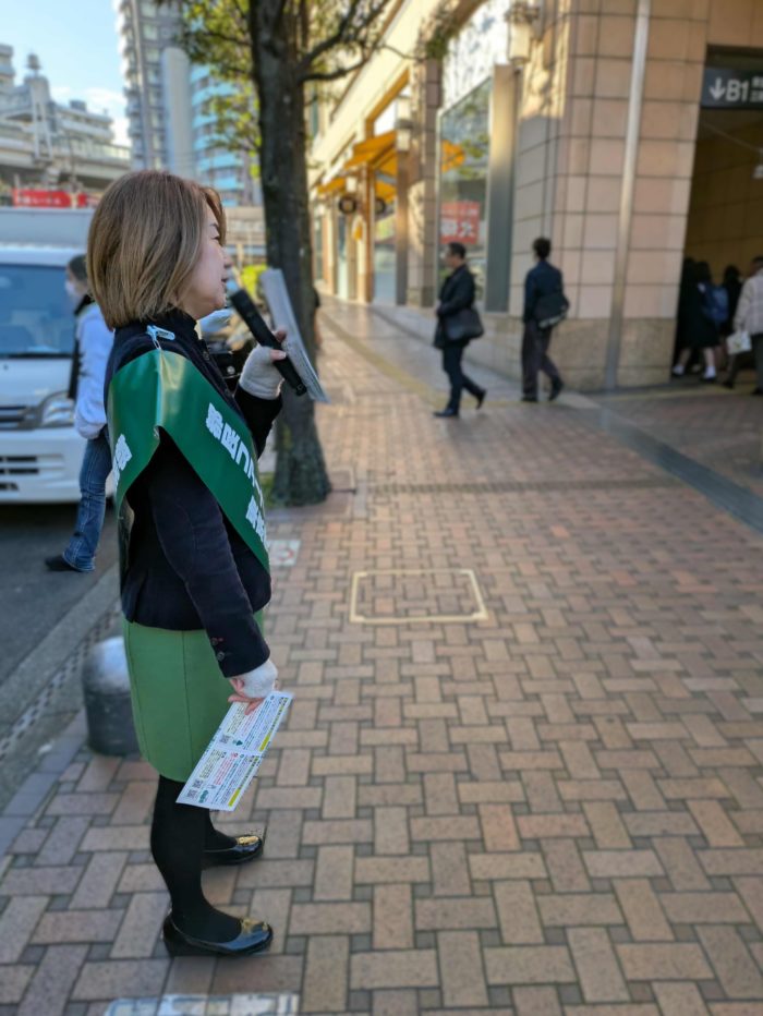 11/12の朝は、世田谷線三軒茶屋駅前にて、支援者お二人と一緒に、7:00-8:00でご挨拶するとともに、最新のレポート「リエコラボ通信40号」をお配りし、都議会第3回定例会の質疑の様子や、知事から「 「緑の広域計画」を新たに策定し、世界一、緑を実感できる都市を 目指していく。」との答弁があったことなどをご紹介しました。