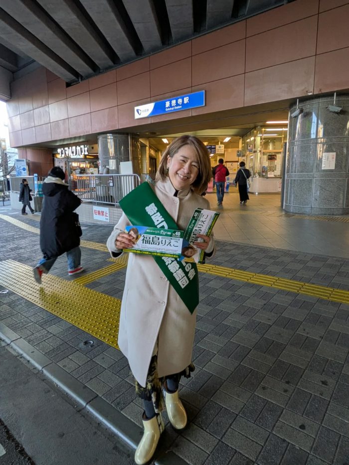 12/10の朝は、小田急線豪徳寺駅にて、支援者お二人と一緒に、7:00-8:30でご挨拶するとともに、都政レポート「リエコラボ通信40号」をお配りしながら、昨日行われた都議会第4回定例会の代表質問について一部ご紹介しました。なかでも、物価高騰対策としての11,000ポイントが、都民ファーストの会の提案で開発が進められてきた東京アプリを通じて支給する取り組みを通じて、今後、都民の皆様に様々な事業をスピーディに届けることができる環境整備が進むことは重要です。