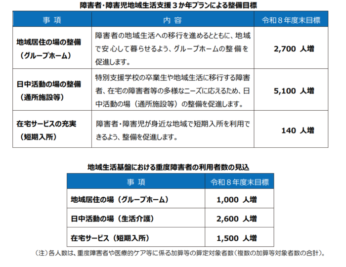 都の「障害者・障害児地域生活支援3か年プラン」では、短期入所の整備目標を掲げています。